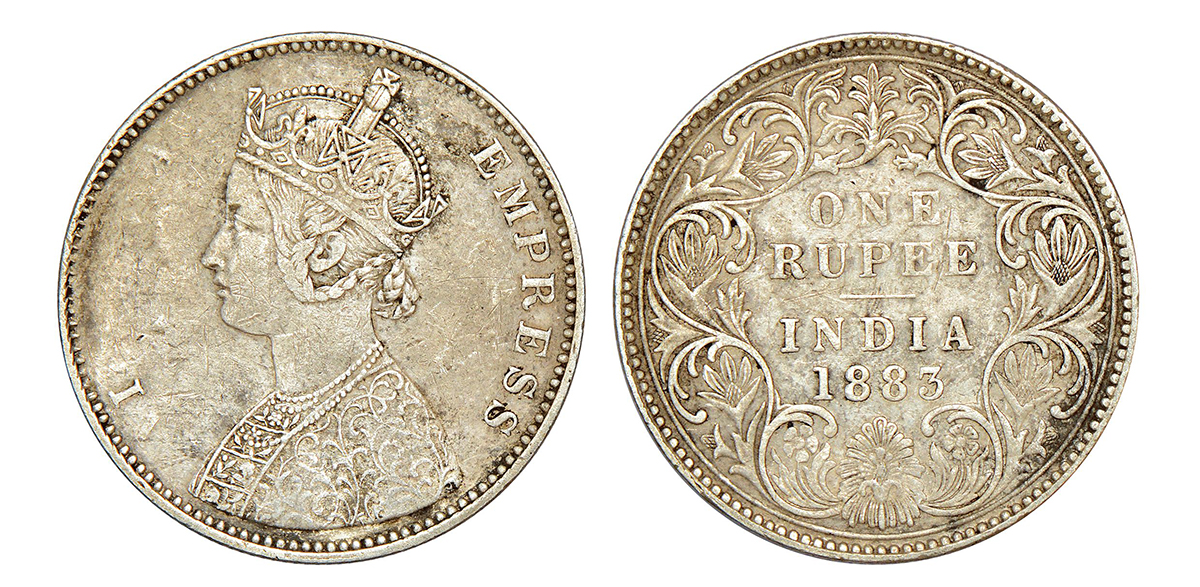 Victoria Empress, silver rupee, 1883, Bombay mint, A3/I/'B' raised, PR 164; GK 482-483, 11.60g.