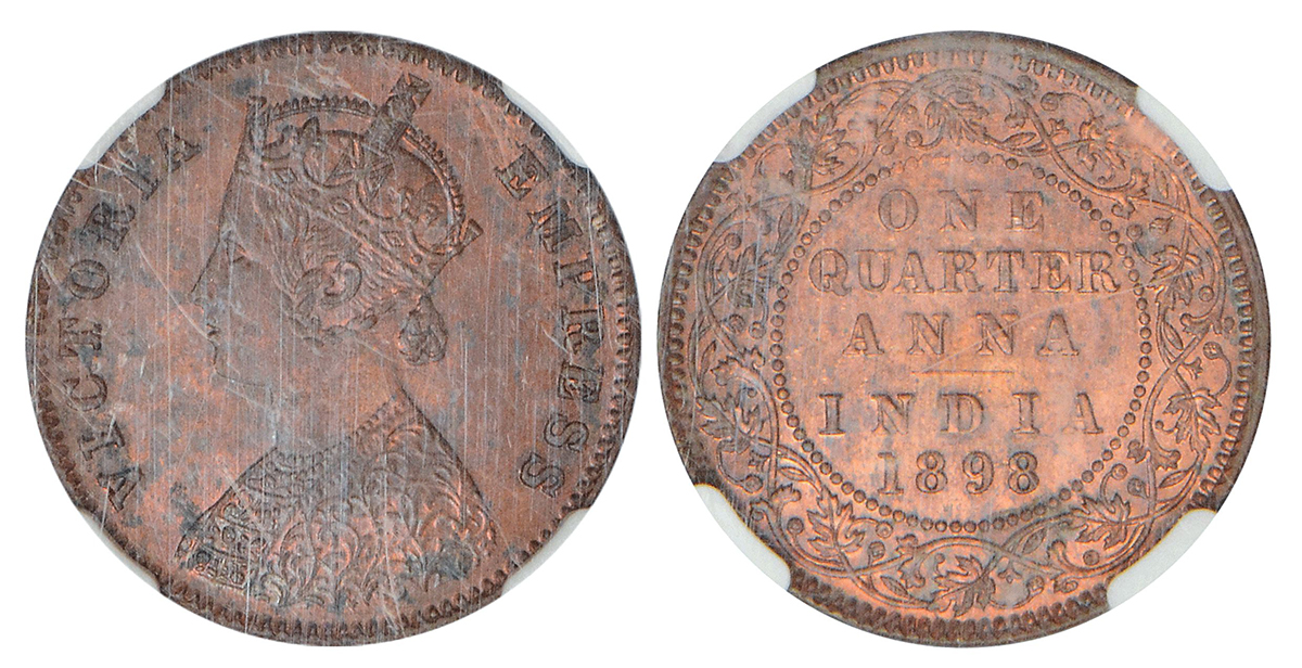 Victoria Empress, copper ¼ anna, 1898, Calcutta mint, B/II/no mint mark, PR 631; GK 857.