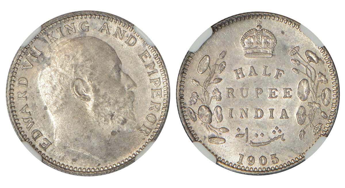 Edward VII, silver ½ rupee, 1905, Calcutta mint, no mint mark, PR 309; GK 960.