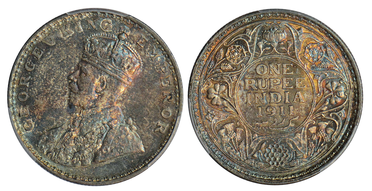 George V, silver rupee, 1911, Bombay mint, dot, ‘Elephant like Pig’ type, PR 217; GK 1022.