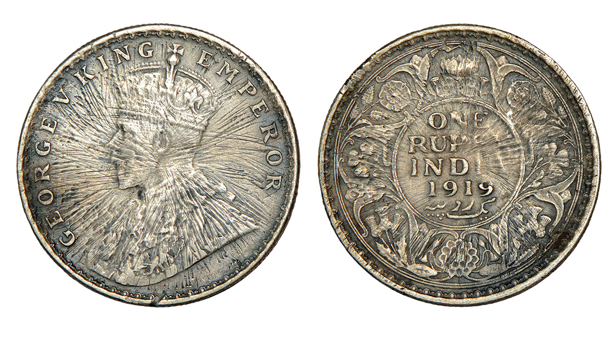 George V, silver rupee, 1919, Calcutta mint, no dot, PR 215; GK 1039, 11.30g.