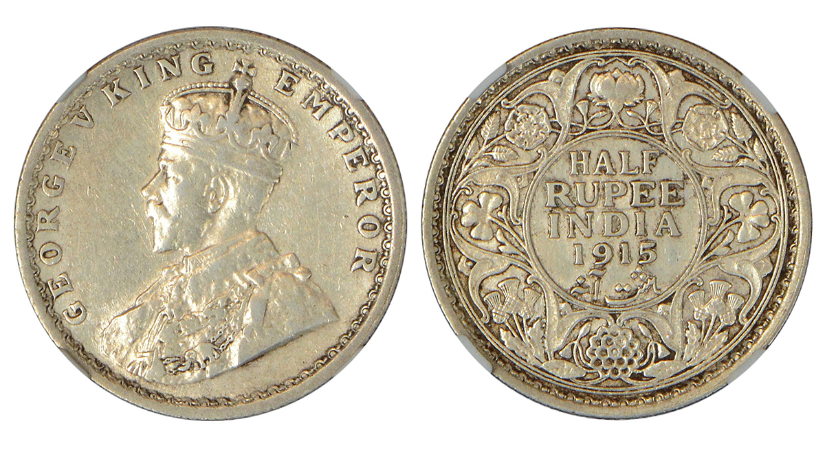 George V, silver ½ rupee, 1915, Calcutta mint, no dot, PR 322; GK 1052. ...