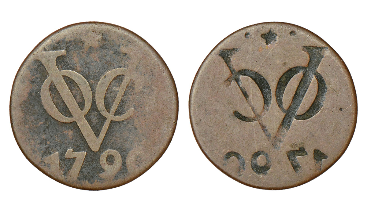 Netherlands East Indies, copper duit, 1790, obverse part brockage (lakhi) on reverse, 2.69g.