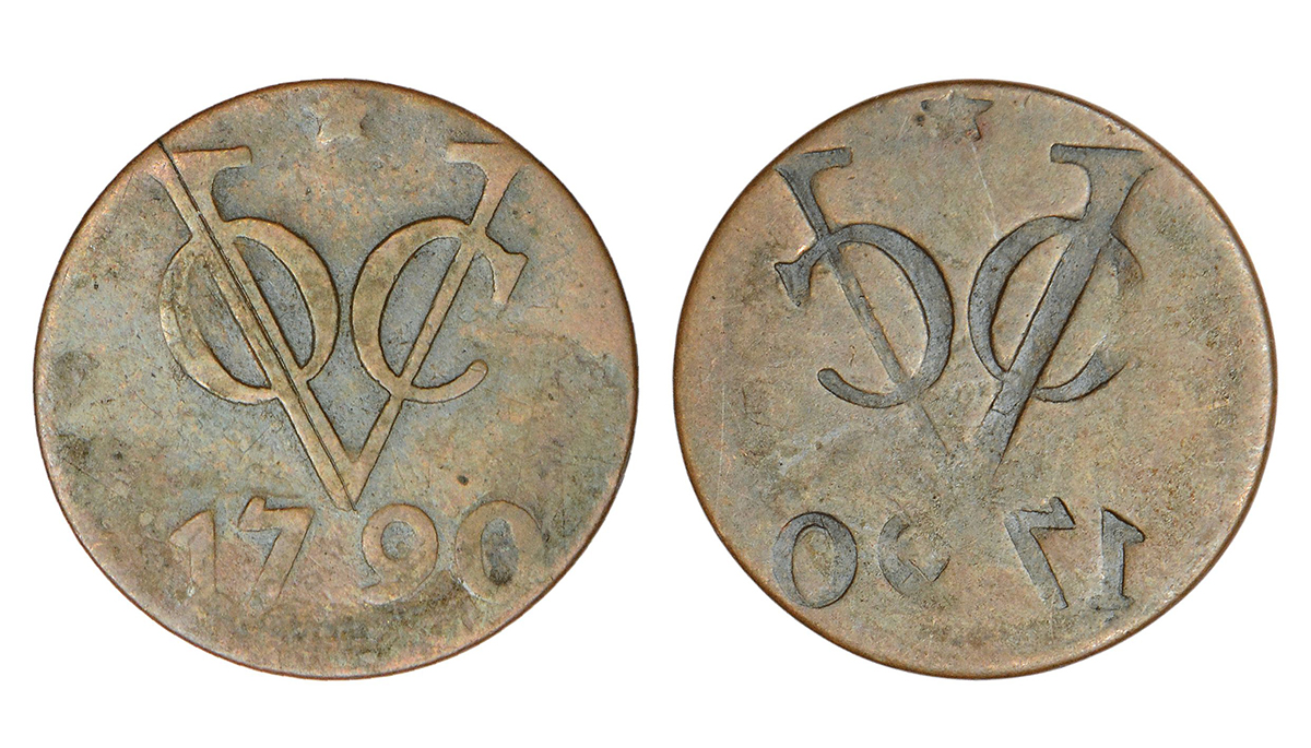 Netherlands East Indies, copper duit, 1790, obverse part brockage (lakhi) on reverse, 3.18g.