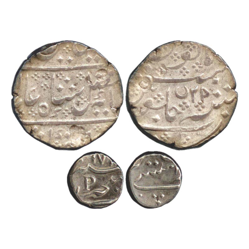 Indo-French (2), Silver Rupee, Arkat Mint, in the name of Shah Alam II, RY 29 and 1/5 Rupee, Pondicherry Mint, with letter P. (2 Coins).