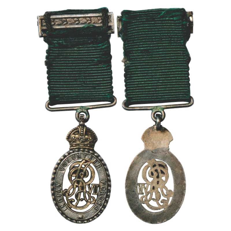 Indian Volunteer Forces (1902), Edward VII, Silver Miniature Medal, 4.81g. An oval skeletal Badge with the Royal monogram within an oval band inscribed INDIAN VOLUNTEER FORCES with green ribbon.