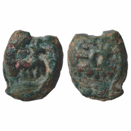 Early Uninscribed Copper Cast Coinage (200-100 BC), Deccan series, 14.25g. Obv: A bold three-arched hill surmounted by a crescent. Rev: An 'open cross' symbol.