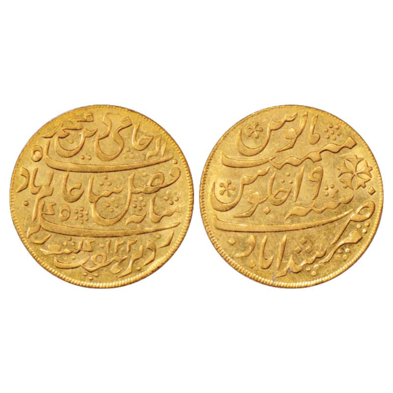 Bengal Presidency, Gold Mohur, 12.37g. Murshidabad Mint, in the name of Shah Alam II, AH 1202/RY 19, Edge Grained right, 26.72 mm, Stevens-CBP 5.2.