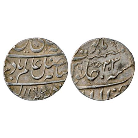East India Company, Silver Rupee, Allahabad Mint, in the name of Shah Alam II, AH 1195/RY 23. 'Star' mint mark on obverse and 'Fish' mint mark on reverse.