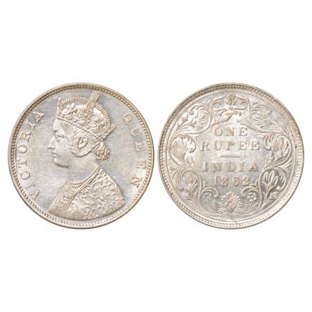Victoria Queen, Silver Rupee, 1862, Bombay Mint, B/II(a)/0/0, 4 Pineapple type, unlisted in PR.