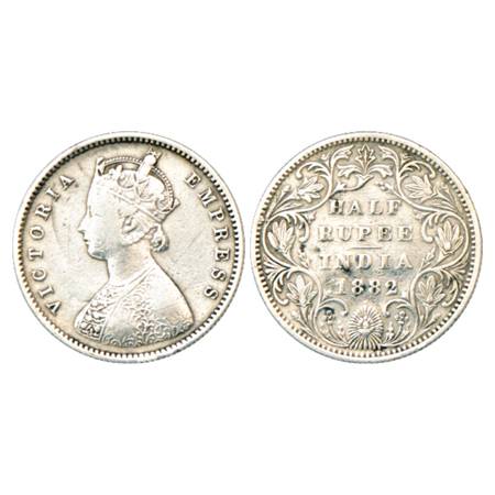 Victoria Empress, Silver ½ Rupee, 1882, Bombay Mint, A/II/dot, PR 291.