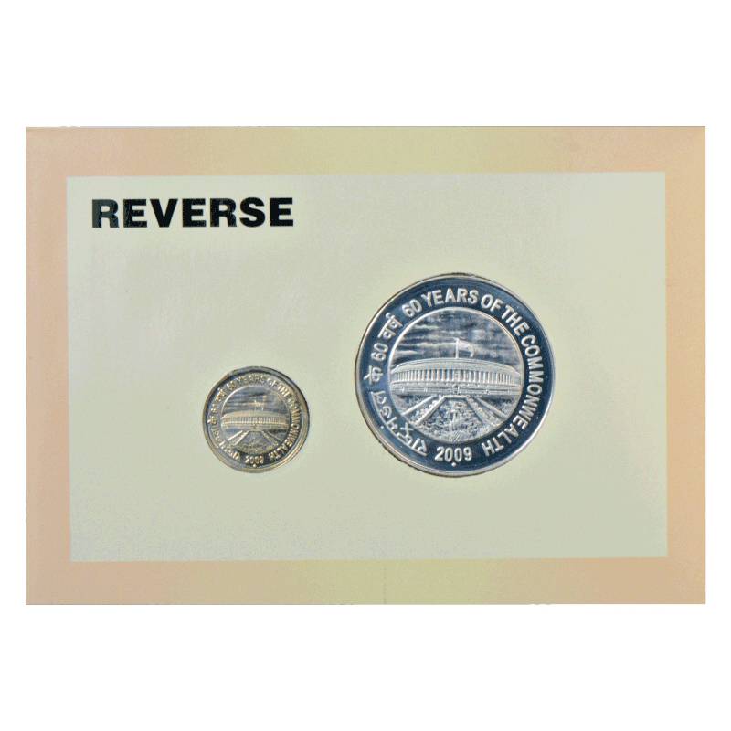 2009, 60 Years of the Commonwealth, UNC set of 2 coins, 100 Rupees and 5 Rupees, Mumbai Mint, RB 363.