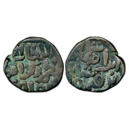 Sultans of Delhi, Khaljis, Shams al-Din Mahmud (1318 AD), Billon Jital, no mint, AH 718, G&G D287 (listed as RRR), 3.59g. Obv: Arabic legend (al-Sul)tan al-('Azam) Shams al-D(unyawa al-Din). Rev: Arabic legend Abu al-Muzaffar Mahmud Shah (al-Sultan).