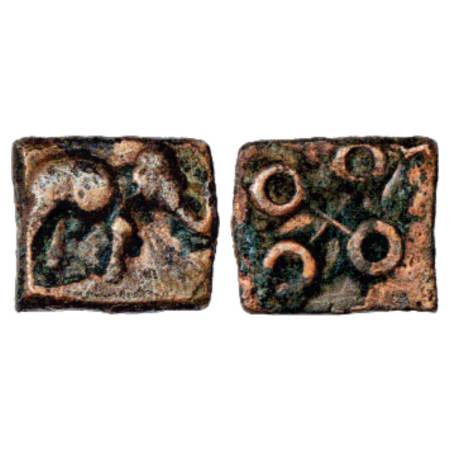 Although this coin is uninscribed, the stylistic and typological similarities it shares with the inscribed coins of Kutapada make its attribution to the ruler certain.