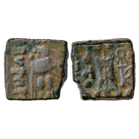 The name of the ruler who struck this coin is tentatively restored as 'Vasasami' (Vasuswami). He appears to be one of the post-Mauryan independent rulers in this region which only recently have come to light.