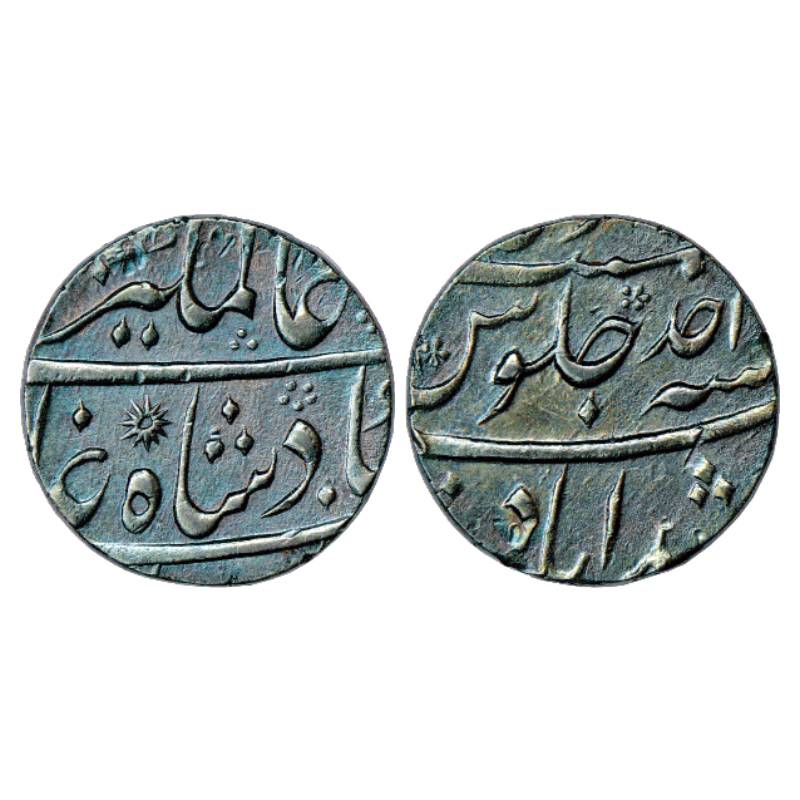 Nawabs of Bengal, Alivardi Khan (1740-1756 AD), Silver Rupee, Murshidabad Mint, in the name of Alamgir II, RY Ahd, Star mint-mark on obverse, black toned.