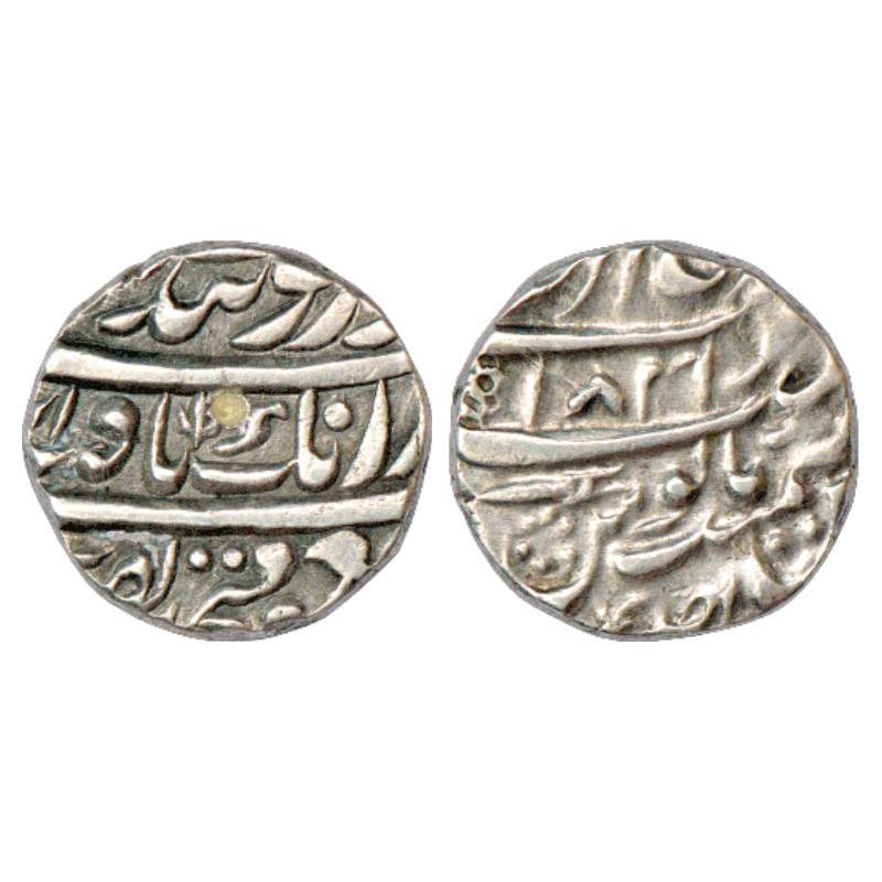 Maratha Confederacy, Silver Rupee, Ahmadabad Mint, in the name of Shah Jahan III, RY Ahd, Ankus mint-mark on reverse, M&W T3.