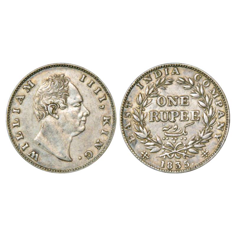 William IV, silver rupee, 1835, Bombay mint, no initial, B/II/20 berries, bud leaves, PR 40; GK 32/34.