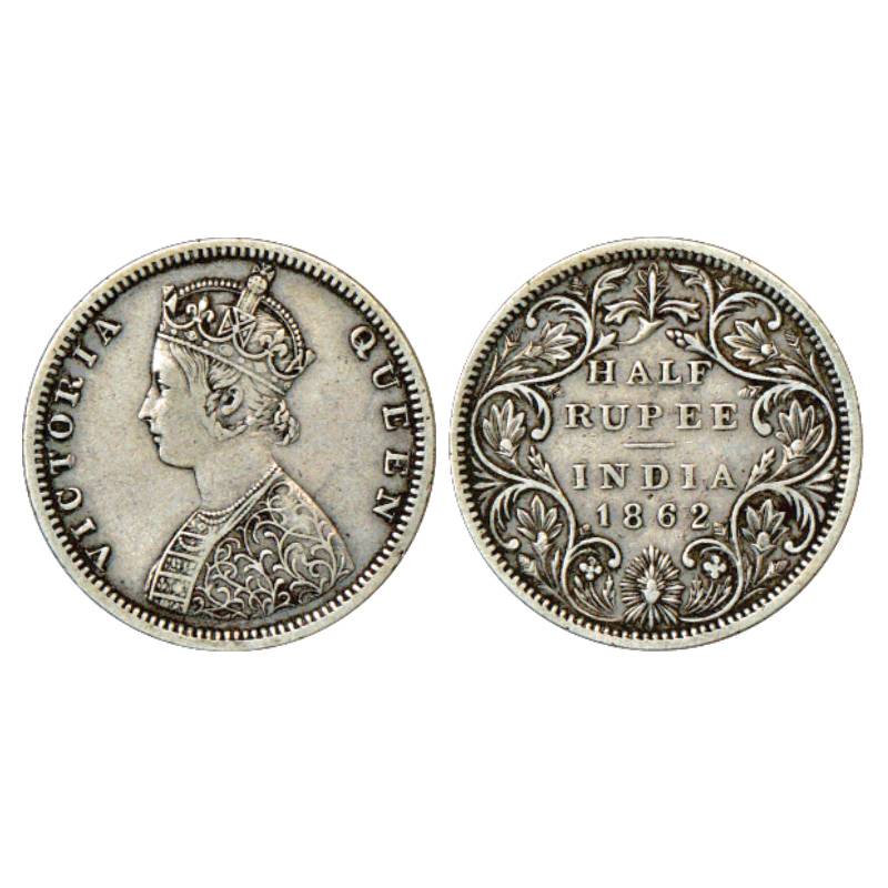 Victoria Queen, silver ½ rupee, 1862, Madras mint, B2/II/no mm, PR 259; GK 372.