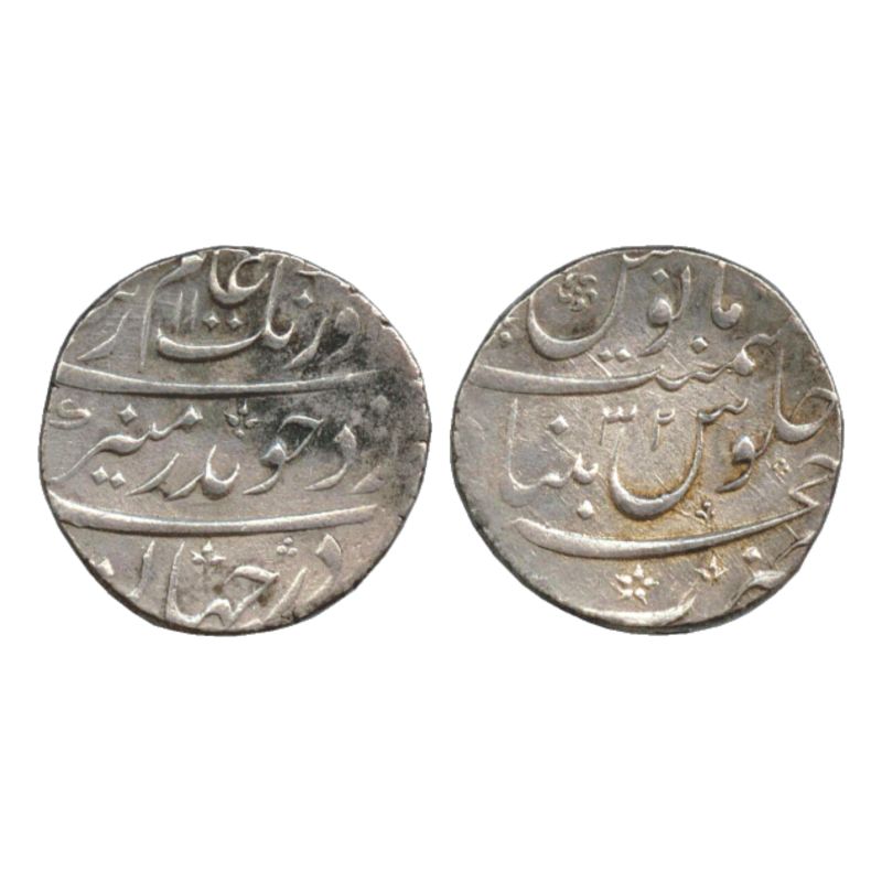 Aurangzeb (1658-1707 AD), Silver Rupee, Khujista Bunyad Mint, AH 1100/RY 33, (KM 300.52). Khujista ...