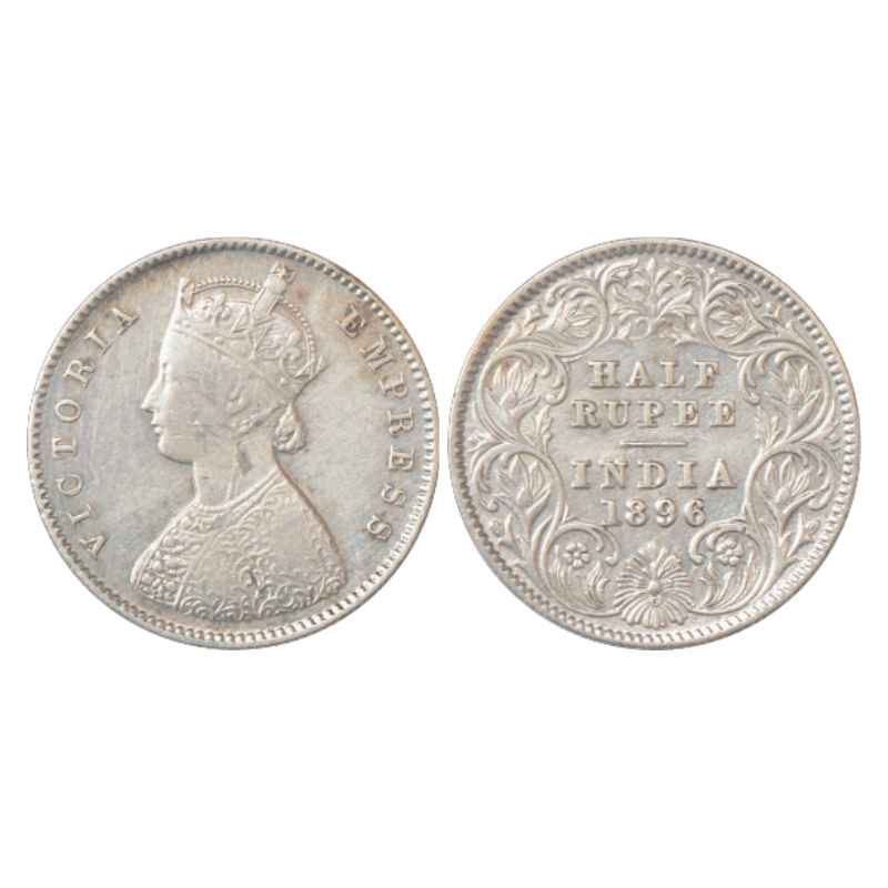Victoria Empress, Silver ½ Rupee, 1896, Calcutta Mint, A/I/'C' Incused, PR 279.