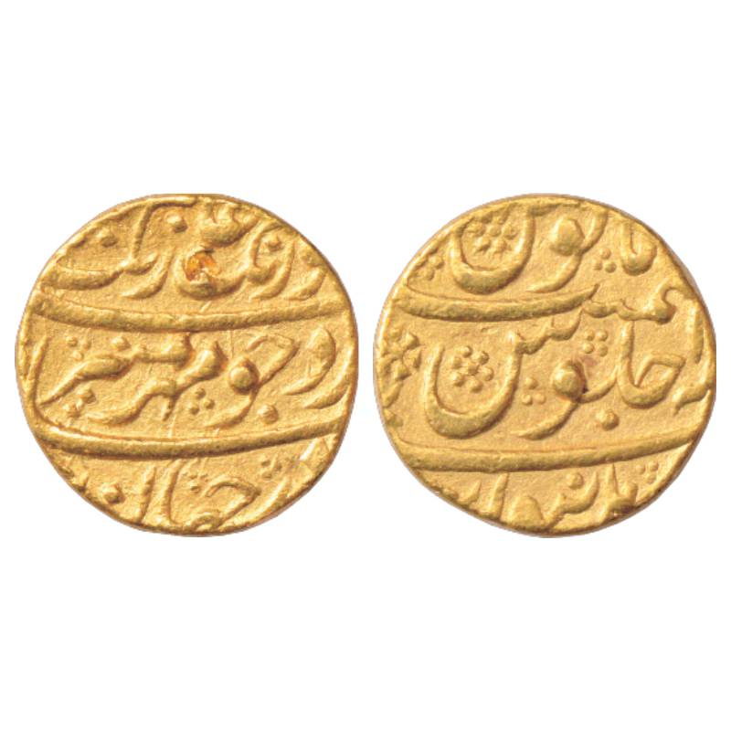 Aurangzeb (1658-1707 AD), Gold Mohur, 10.93g. Burhanpur Mint, RY 1x, KM 315.16.