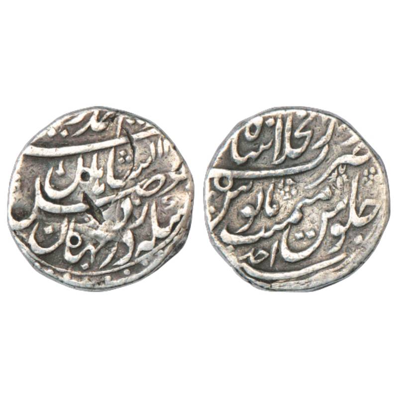 Muhammad Shah (1719-1748 AD), Silver Rupee (2), Dar us-Sarur Burhanpur Mint, AH 1135/RY 35, KM 436....