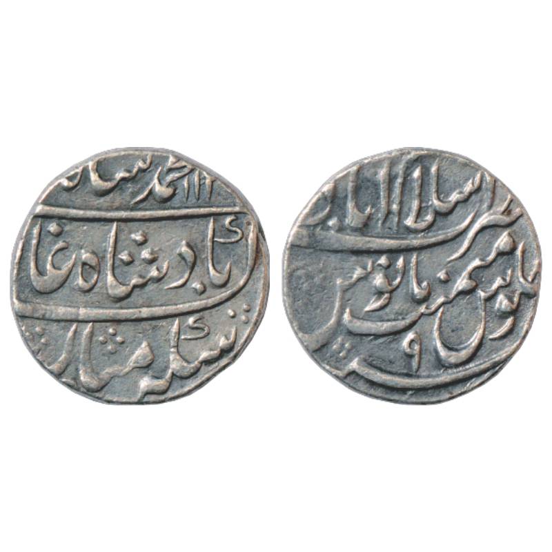 Muhammad Shah (1719-1748 AD), Silver Rupee, Islamabad Mint at top, AH 113x/RY 9, KM 436.28.