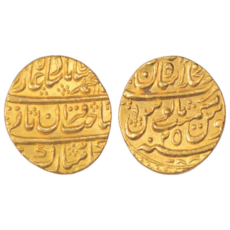 Muhammad Shah (1719-1748 AD), Gold Mohur, 10.83g. Dar ul-Khilafat Shahjahanabad Mint, AH 11xx/RY 28...