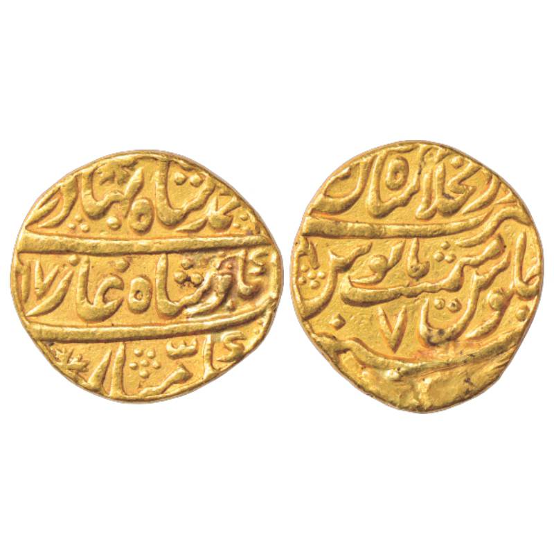Ahmad Shah Bahadur (1748-1754 AD), Gold Mohur, 10.87g. Dar ul-Khilafat Shahjahanabad Mint, AH xx67/RY 7, KM 449.12.
