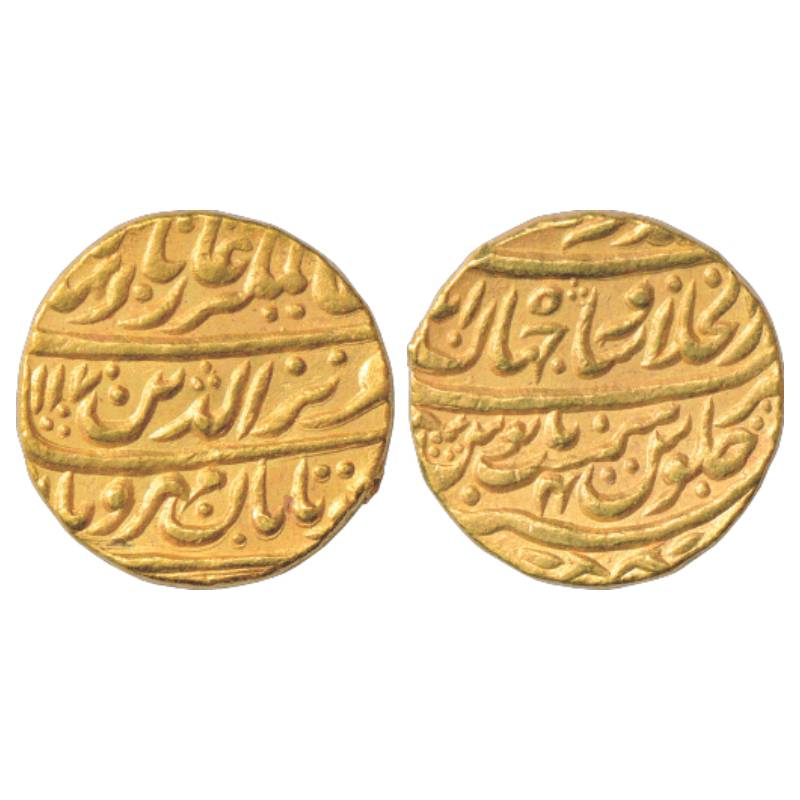 Alamgir II (1754-1759 AD), Gold Mohur, Dar al-Khilafat Shahjahanabad Mint, RY2, with full name of t...