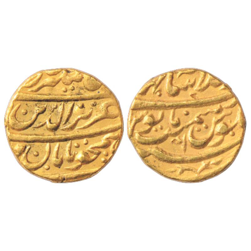 Alamgir II (1754-1759 AD), Gold Mohur, Dar al-Khilafat Shahjahanabad Mint, RY2, with full name of t...