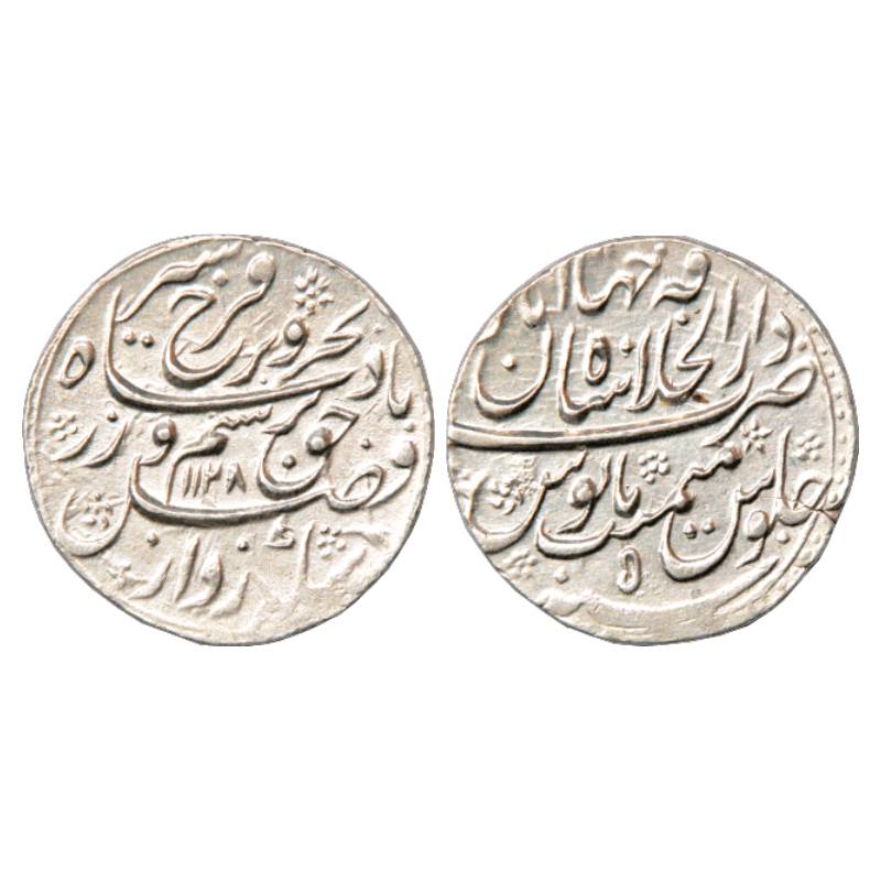 Farrukhsiyar (1713-1719 AD), Silver Rupee, Dar ul-Khilafat Shahjahanabad Mint, AH 1128/RY 5, KM 377.55.