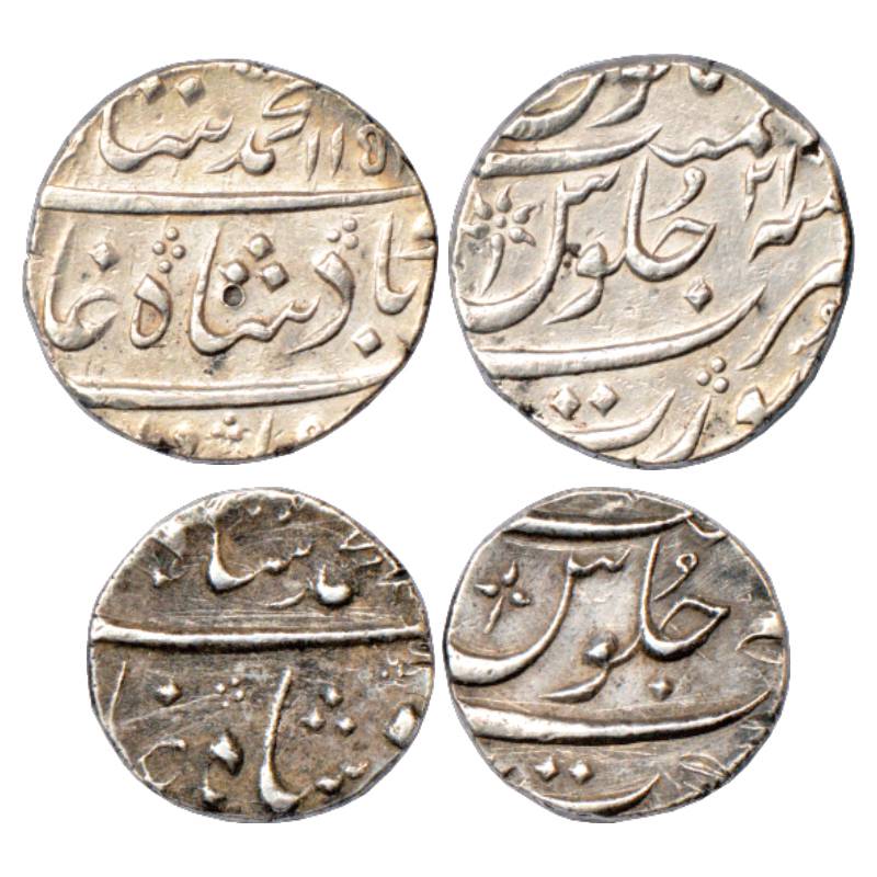 Muhammad Shah (1719-1748 AD), Silver Rupee and ½ Rupee, Surat Mint, 'Ba-Luft-Alah Badshah-i-Zaman' ...