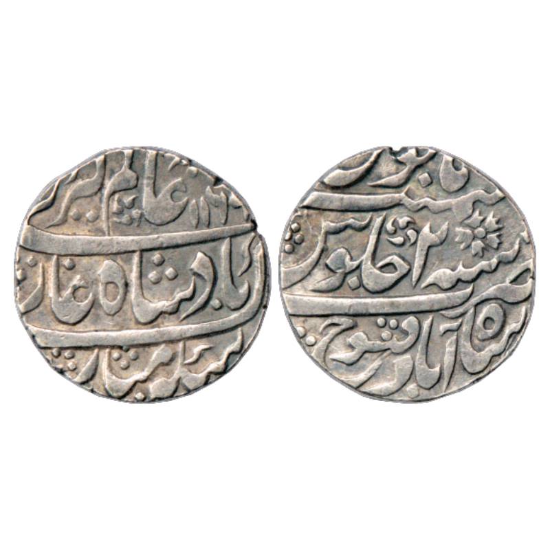 Alamgir II (1754-1759 AD), Silver Rupee, Jahangirnagar Mint, RY Ahd, KM 460.9. 'Flower' type mint m...
