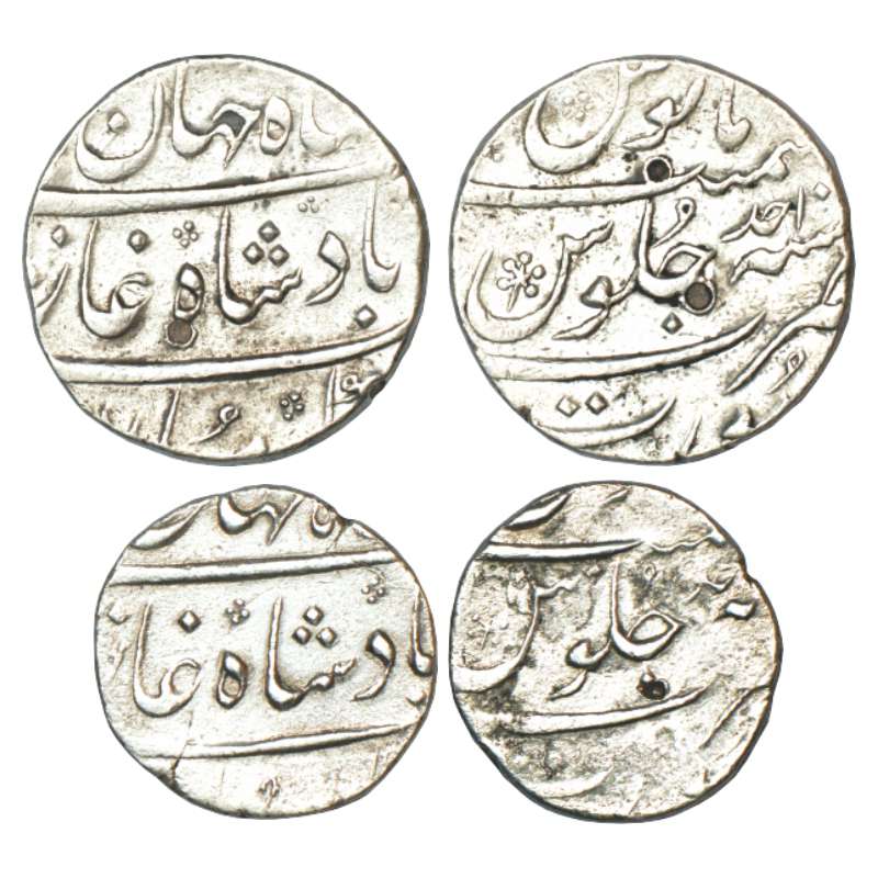 Muhammad Shah/Ahmad Shah, silver rupee (2), 1x Akhtarnagar Awadh mint at top, AH 1158/RY 28 and 1x ...
