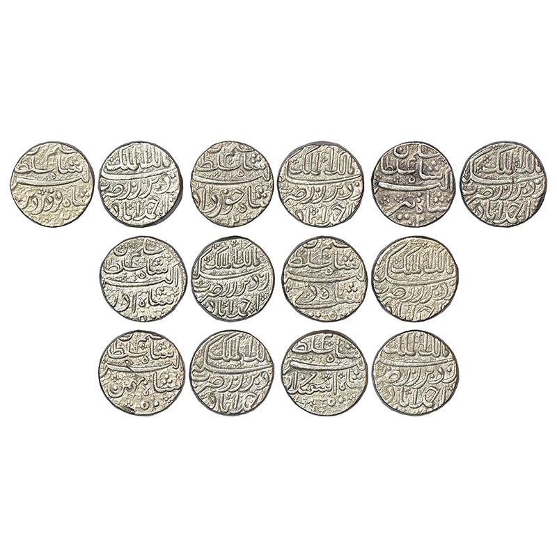 | Jahangir (1605-1627 AD), silver rupee, with pre-accession name Salim, 7 different months, Ahmadabad mint, Farwardin-2, 11.28g, Khurdad-2, 11.29g, Tir-2, 11.29g, Azar-50, Di-50, 11.31g, Bahman-50, 11.23g and Isfandarmunz-50, 11.27g, KM 140.1-140.2. (7 different months). |