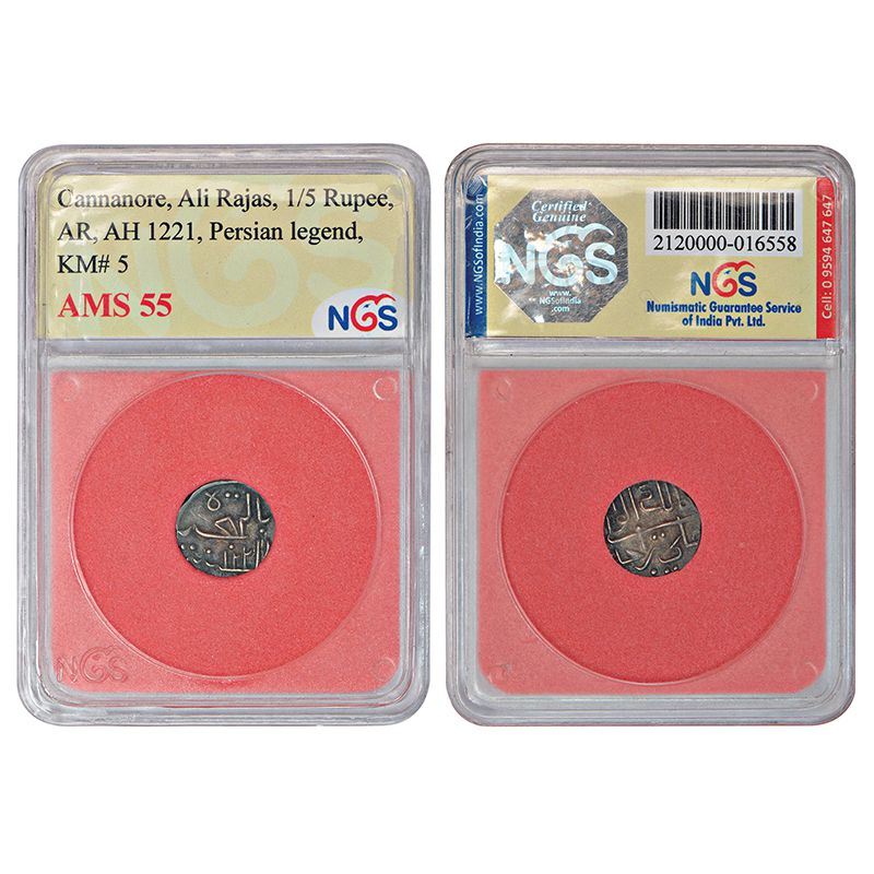 Cannanore, British tributary, Ali Raja (1710-1815 AD), silver 1/5 rupee, AH 1221, KM 5.