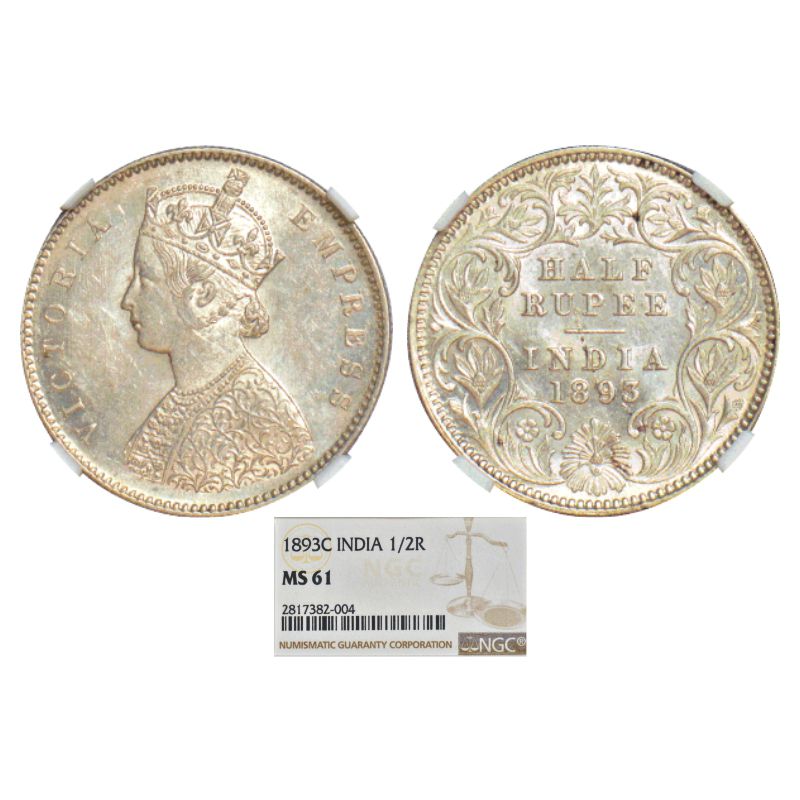 Victoria Empress, silver ½ rupee, 1893, Calcutta mint, A/I/'C' incused, PR 277; GK 649.