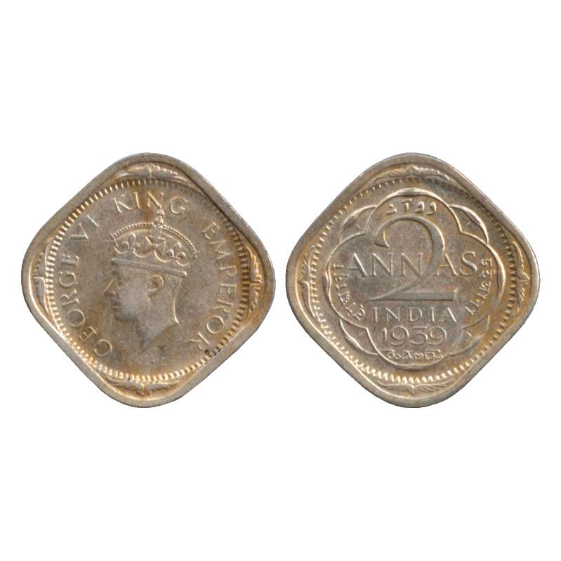 George VI, Cupro-Nickel 2 Annas, 1939, Calcutta Mint, head type II. (Pr. 905)