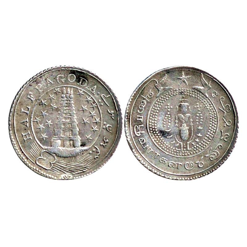 East India Co., Madras Presidency, (1808), Silver ½ Pagoda, second issue. Obv: value in English and Persian, around Gopuram, Rev: value in Tamil and Telugu around deity Vishnu, (KM 353).